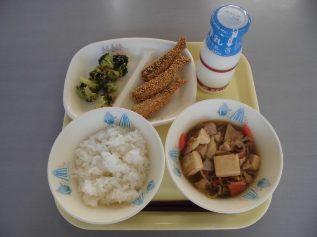 11月17日(月) ご飯、牛乳、ひきずり、いわしフライ・3個、ブロッコリーのおかか和え