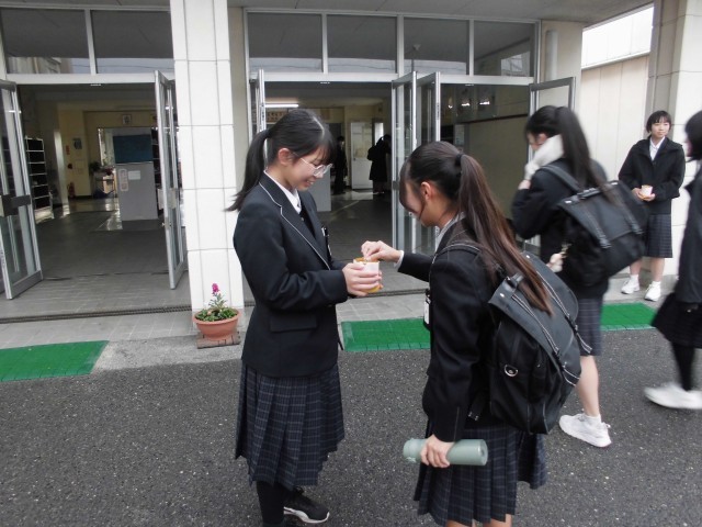 昨日から生徒会執行部の生徒が募金の呼びかけをしています。