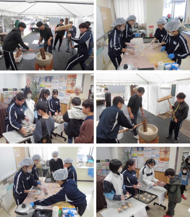 本日、北方町連区「もちつき大会」が北方公民館で行われました。本校から14名の生徒がボランティアとして参加し、実際に餅をつく作業、ついた餅(きなこ・すりごま)を配布する作業などを手伝いました。どの生徒も任された役割をしっかりと果たすことができ、地域のみなさんに笑顔で対応している姿がとても印象的で、すばらしく思いました。