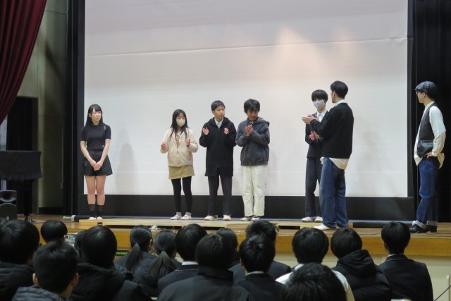 リズミカルな足音と軽快なダンスに生徒たちは引き込まれていました。タップダンスの歴史について教えていただいたり、リズム打ちに挑戦したりとあっという間の1時間でした。最後は3年生に向けて、タップダンスとともに心温まるメッセージと思いのこもったスライドもあり、素敵な時間となりました。