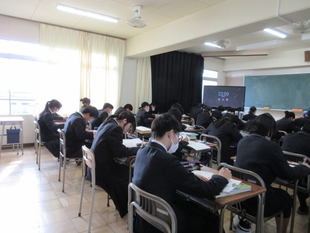 来週の学年末テストに向けて、各教科でテスト前の復習や、テスト範囲の問題演習等を行っていました。2Aは社会、2Bは英語に取り組んでいました。2年生での定期テストは、学年末テストが最後です。3学期のまとめとして頑張りましょう。