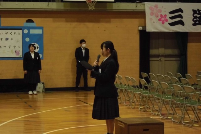 5,6時間目に3年生を送る会がありました。1,2年生が時間をかけて3年生のために準備をしてくれました。有志による劇や、生徒会の出し物、思い出のスライドなど、どれも温かく、楽しいものばかりでした。一人ひとりへのプレゼントもとても素敵でした。3年生からのお礼の合唱も今までで一番の歌声でした。みなさんに思いがしっかりと伝わったのではないでしょうか。楽しい時間をありがとうございました。卒業まであと3日です…