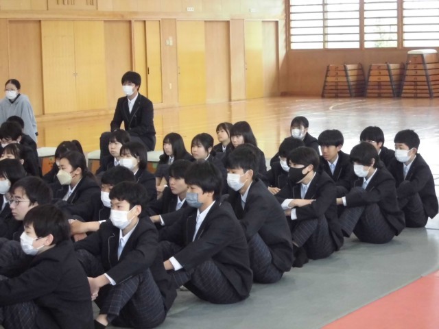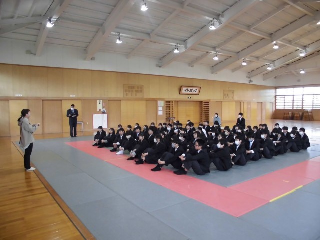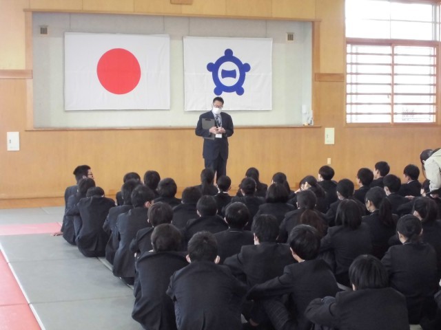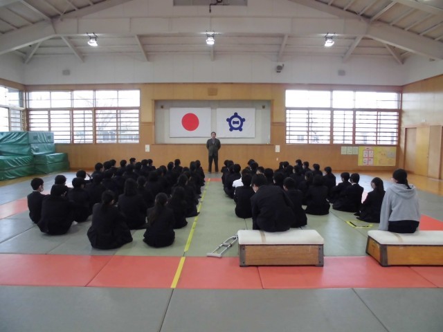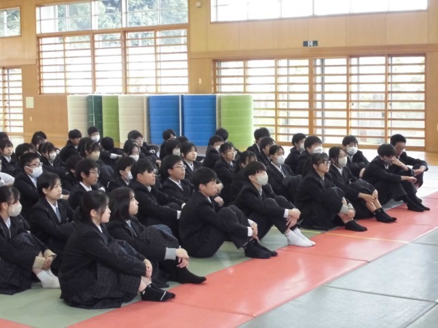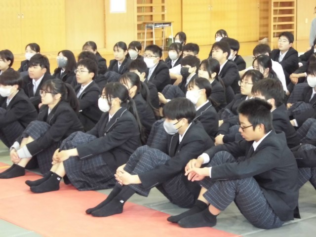 3月23日(月) 2年生学年集会 公開日 2026/03/23 更新日 2026/03/23 2年生 本日3月23日(月) 1時間目に2年生学年集会を行いました。学習面,生活面,全体について先生たちから,学年最後の話をしました。生徒たちは真剣に話を聞いていました。この一年間,生徒たちはよくがんばってきました。我々教師も楽しい一年間を過ごすことができました。来年度も力を合わせて,素晴らしい一年としたいと思います。 +4