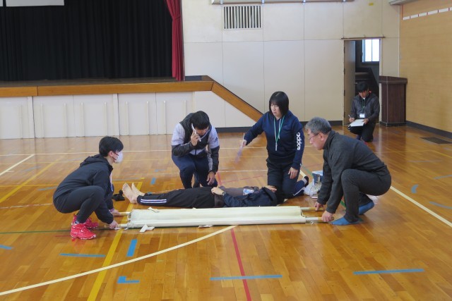 熱中症への対応を想定したシミュレーションや、心肺蘇生法の実技訓練を行いました。