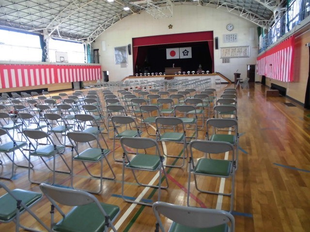 明日の始業式・入学式に向けて、新2、3年生の生徒が協力して準備を行いました。