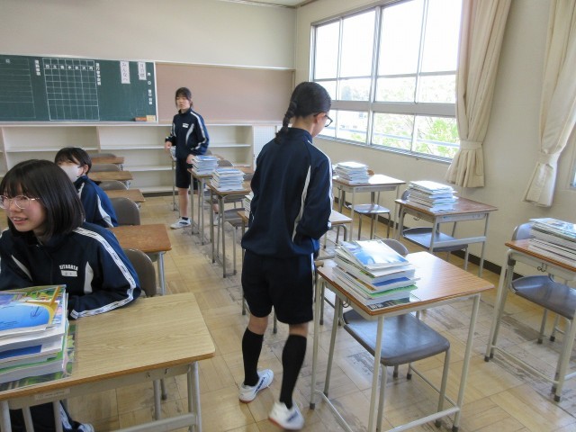 本日、新年度に向けた準備のため新2、3年生が久しぶりに登校しました。屋内運動場の準備や新しい教科書の運搬、環境整備など、良いスタートを切るために一生懸命に動いてくれました。新入生の皆さん、明日はいよいよ入学式ですね。新たな出会いを楽しみにしています。