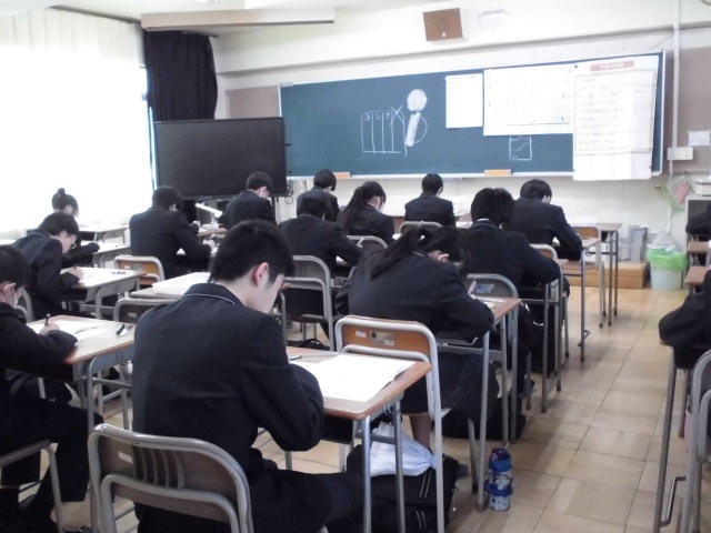 NRT学力検査の様子です。教科の領域で、今の学力の状況を把握し、授業に生かしていくためのテストです。