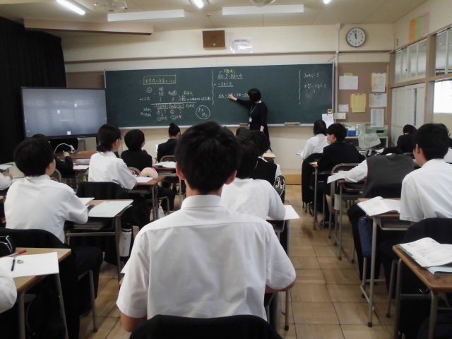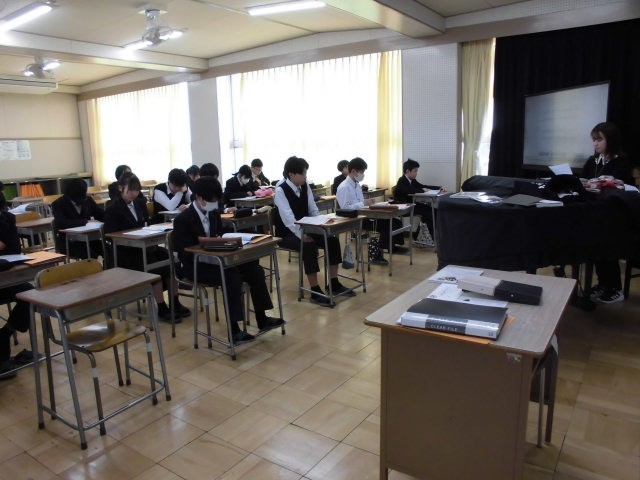 音楽、数学の授業です。1枚目の音楽は、これから学習する歌唱曲を確かめました。2枚目の数学は、文字式の学習の様子です。