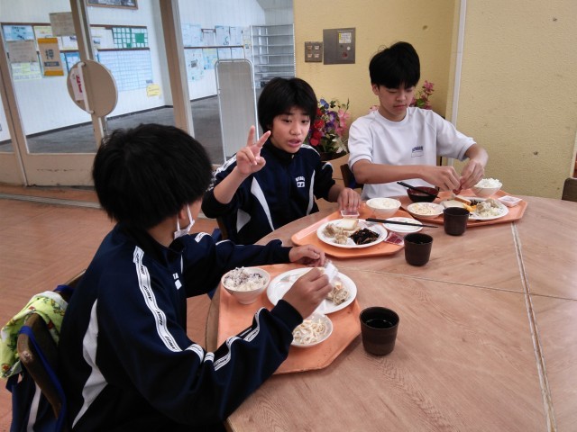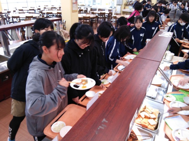 若狭湾宿泊学習2日目の朝食です。疲れもとれ、みんな元気です。