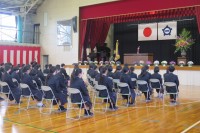 今朝は、新2、3年生のみなさんが登校し、明日の準備のために屋内運動場に集まりました。