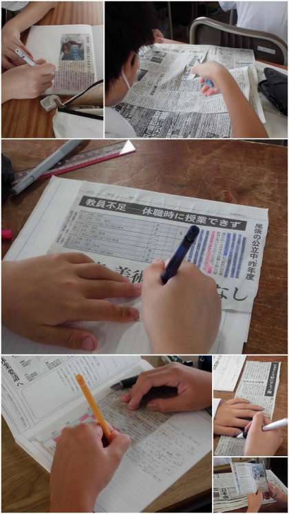 新聞記事を切り取り、大切な部分に線を引き、ノートに貼って、コメントを書きます。