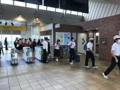 木曽川駅で出発式を行い、いよいよ修学旅行がスタートします。