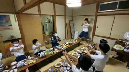 6月15日(水)修学旅行第1日・民宿での夕食 公開日 2022/06/15 更新日 2022/06/15 3年生 民宿での夕食の様子です。みんなで協力して民宿のお父さん、お母さんのお手伝いをしています。とても美味しそうなご飯ですね。 今日のブログの更新は、これで終わりです。おやすみなさい。