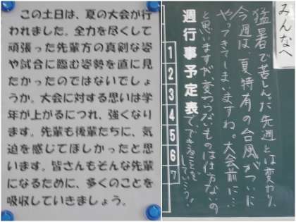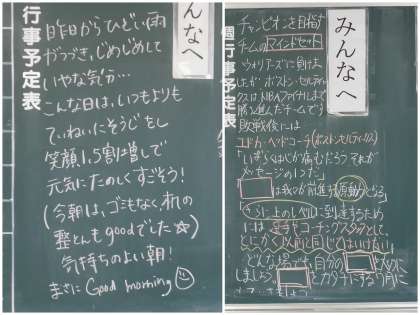 それぞれの担任が大会を振り返って子どもたちに温かいメッセージを送っています。
