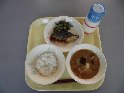7月11日(月) ご飯、牛乳、じゃがいものみそ汁、さわらの照り焼き、いんげんのごま和え