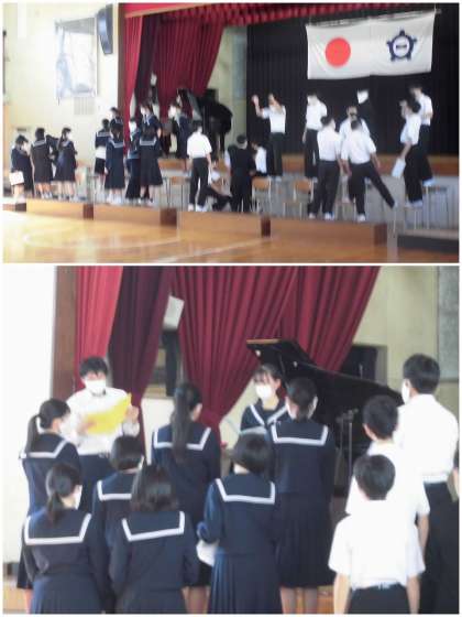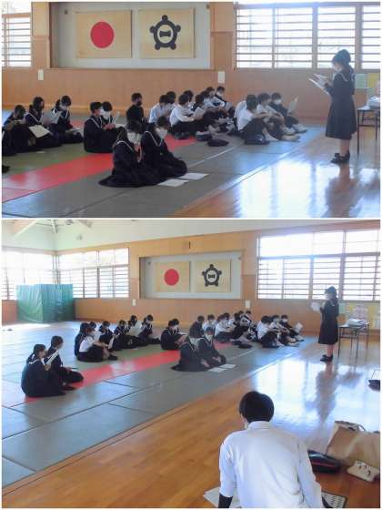 5限、3年生は合唱の学級練習を武道場・屋内運動場・音楽室で行っていました。活動場所はロ^テーションしています。