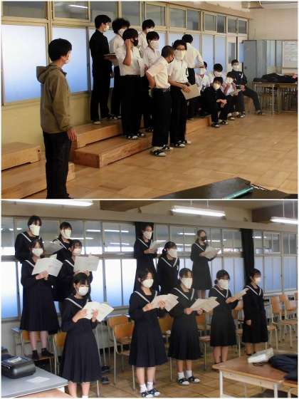 7限にリハーサルを控え、どのクラスも真剣です。指揮者・伴奏者の言うことに耳を傾け、少しでもよい合唱ができるように頑張っています。