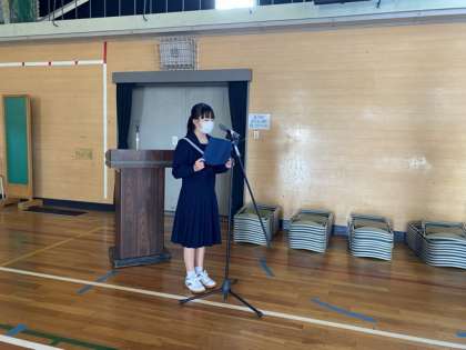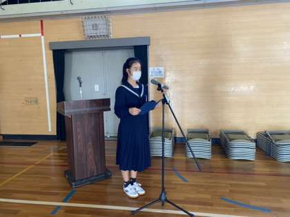 歌声コンクールでの練習は合唱だけではありません。曲の紹介をするナレーターも原稿を考え、読む練習をしています。