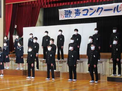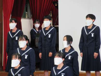 コロナ渦での合唱練習で、各クラス様々な障害を乗り越えて、3年生としてしっかりと発表できたと思います。最後には晴れやかな表情で全員で写真撮影をしました。