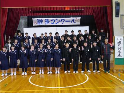 今日は歌声コンクールが行われました。A組、B組ともに練習の成果を発揮し、心に響く歌声を披露することができました。
