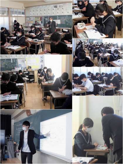 11月8日(火) 授業おじゃまナビ(3年理科) 公開日 2022/11/08 更新日 2022/11/08 3年生 3年理科では「天体の動き方や見え方」について、動画を見たり資料を見たりしながら、学習していました。 問題演習では、時間的なことがらや空間的なことがらをヒントにして「秋の夕方、南の空に見える星座は何か」といった問題にチャレンジしていました。