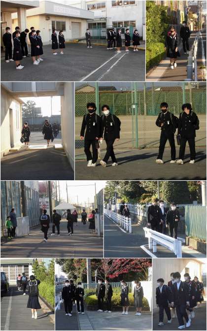 今朝もさわやかなあいさつのもと、北方中生が登校しています。