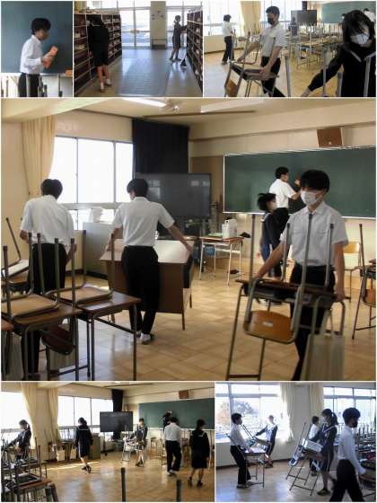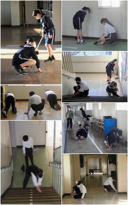今朝も校内のあちこちで清掃活動に精を出す北方中生の姿が見られます。