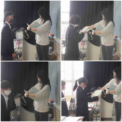 1年生の教室では、先週まで行われていた期末テストの返却が行われていました。