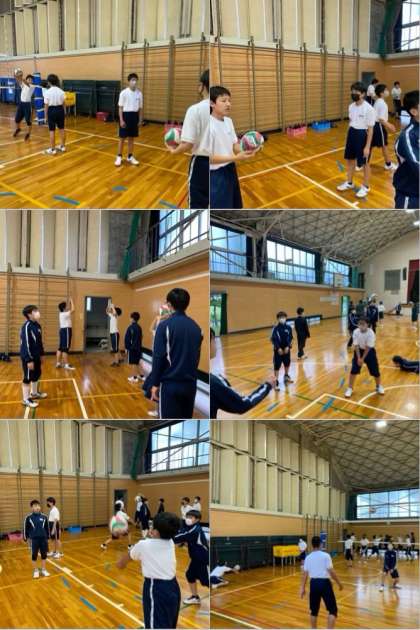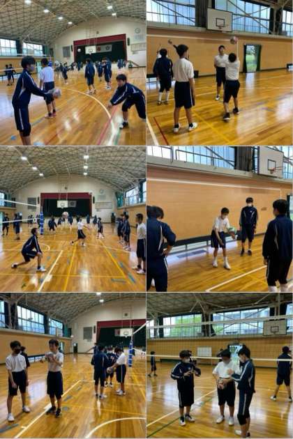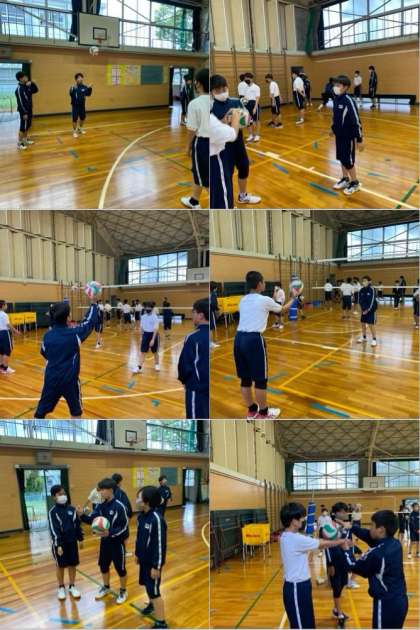 今日は体験入部が行われました。ペアやグループを作り、1年生にバレーボールの基本となるパスを教えました。先輩たちの活気ある雰囲気に圧倒されながらも、一生懸命に練習に参加することができました。