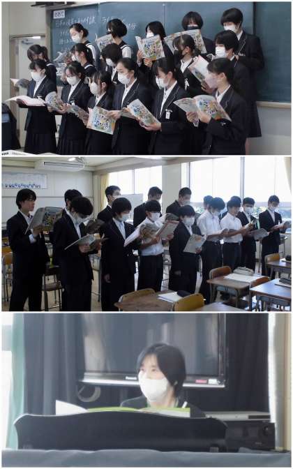 5月10日(水) 情景を思い浮かべながら(2年音楽) 公開日 2023/05/10 更新日 2023/05/10 2年生 2年生の音楽では、「日本の情景を思い浮かべて」というめあてで合唱をしていました。 2年生とって久しぶりの授業で歌は厳しいのかと思いましたが、「語りあおう」という曲を元気よく歌っていて安心しました。