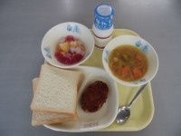 6月1日(木) ご飯、牛乳、あじフライ、じゃがいものベーコン煮