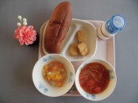 11月26日(水) 黒ロールパン、牛乳、チキンナゲット・3個、みかんゼリー和え、ミネストローネ