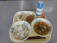 2月26日(木) 白玉うどん、牛乳、カレーうどん(汁)、ふんわり野菜あげ・2個、骨太和え