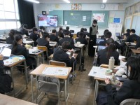 今日の家庭科の授業では、6つの食品群について学習をしていました。自分の食事を見直すと同時に6つの食品群のバランスについて考えていました。班で意見交流をしながら学習を進めていました。