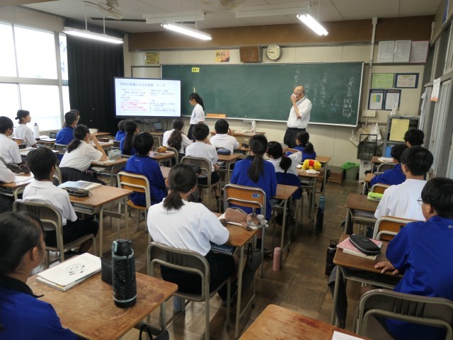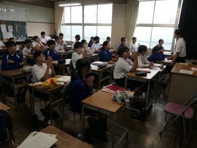 今日の国語の時間は、教科書の「『言葉』をもつ鳥、シジュウカラ」の話に書かれている仮説についてスライドにまとめて発表していました。自分で作成したスライドを見せながら、意見を発表していました。