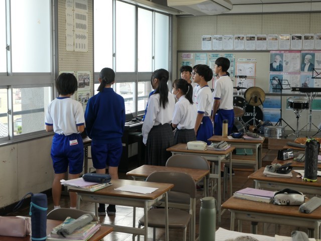 今日の音楽の時間は、合唱祭で歌う曲の練習をしていました。パートごとに分かれて練習を進めていました。