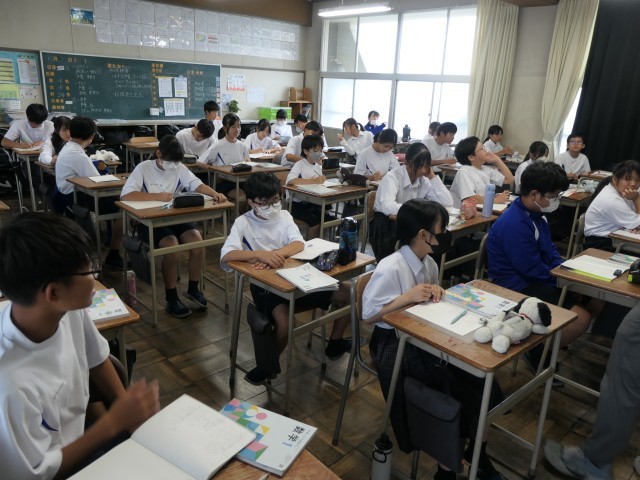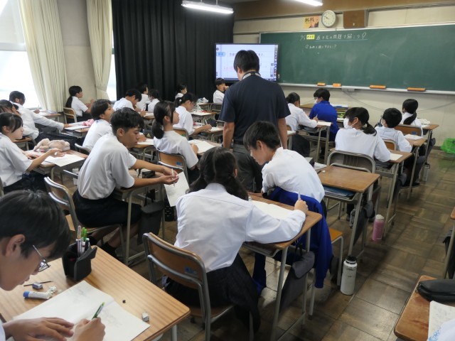 今日の数学の時間は、過不足の問題を方程式を使って解く練習をしていました。あめの個数をxとして式を立てながら問題を解いていました。