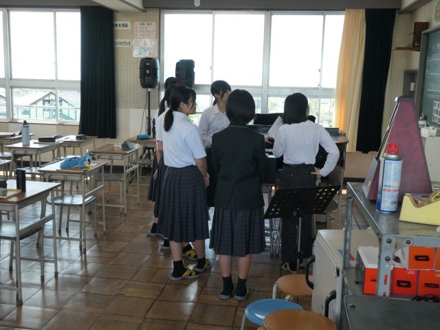 今日の音楽の時間は、合唱祭に歌う曲の練習をしていました。先生からのアドバイスをもらいながら、各パートに分かれて練習に取り組んでいました。
