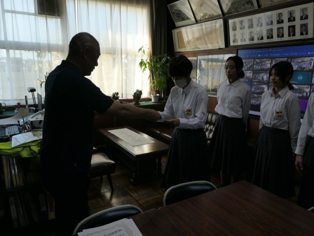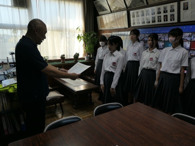 まず最初に、新人大会第3位の女子バスケットボール部とサッカー部の表彰と尾書研書写コンクールの表彰を行いました。