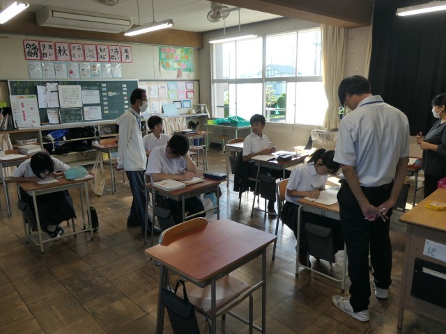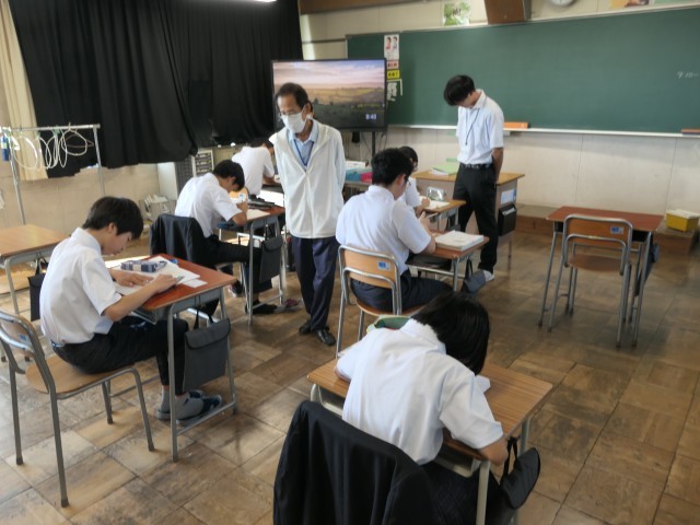 今日の数学の時間は、自分に合った問題を選んで取り組んでいました。分からないところは先生がていねいに教えてくれました。自分の進度に合わせて練習問題に取り組んでいました。