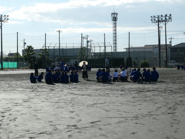 いよいよ明後日になった体育祭の学年競争種目の練習をしていました。運動場に出て、実際にムカデ競争をしながらルールや動きを確認していました。
