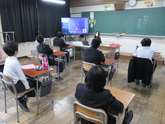 今日の国語の時間は、枕草子について学習をしていました。話のイメージをつかむために、まずは動画を見て学習を進めていました。