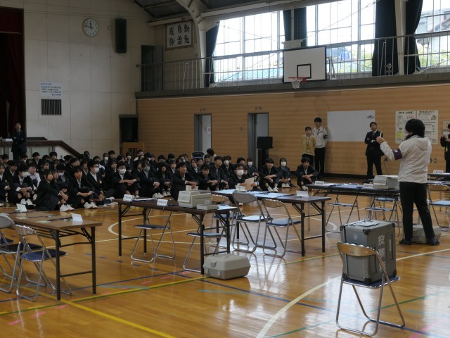 実際の選挙で使う道具を準備していただき、模擬投票を行いました。