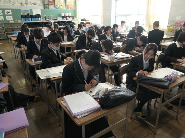 今日の美術の時間は、パッケージデザインの下絵描きをしていました。色を塗る前の下絵を細かく描いていました。