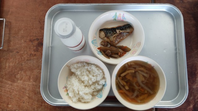 11月5日の給食は、さばの塩焼き、ごぼうの甘辛いため、沢煮わんでした。