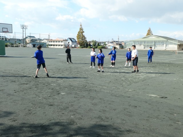 今日の体育の時間は、運動場でドッチビーを行いました。風でディスクが流されていましたが、楽しそうに取り組んでいました。