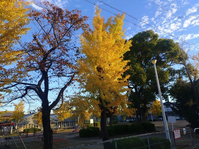 今朝、校区内を歩いているときに、イチョウの葉が黄色く色づいている公園を見つけました。その風景に秋の深まりを感じました。私たちの大和町には、こんな素敵な場所がたくさんあります。大中生の皆さんも、私たちの大和町をゆっくり眺めてみてください。きっと素敵な場所が見つかると思います。