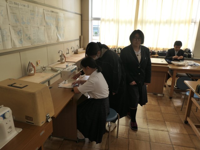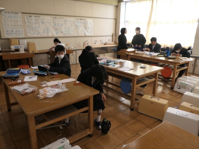 今日の家庭科の時間は、動物ボトルカバーの制作をしていました。ミシンを使って縫ったり、目や口を貼り付けたりしていました。かわいいボトルカバーが完成しつつありました。