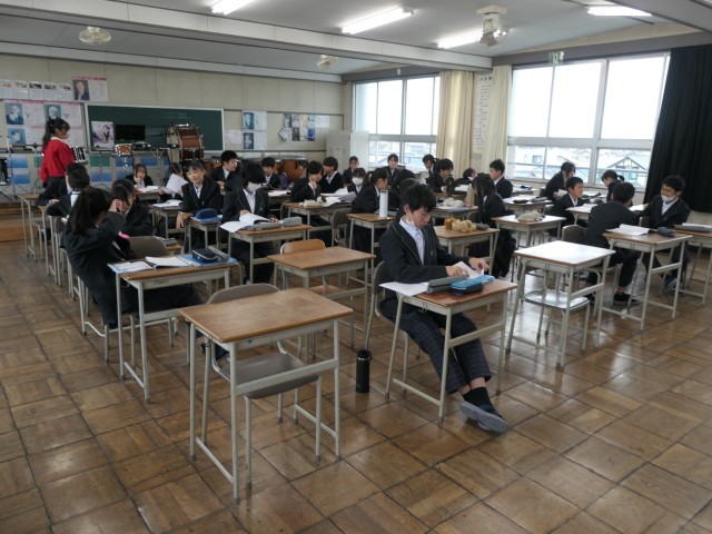 今日の音楽の時間は、期末テスト前の復習を行っていました。2学期に学んだことの再確認をしていました。