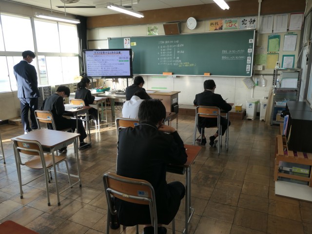 今日から期末テストです。今日は、国語・数学・理科のテストを実施しました。テスト問題に集中して取り組んでいました。